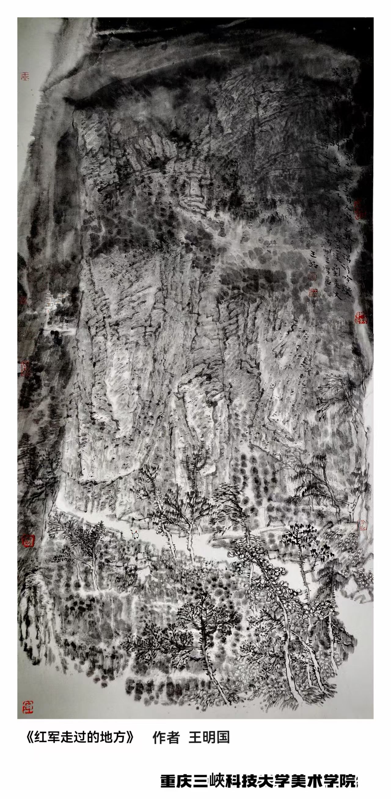 为深切缅怀革命先辈的丰功伟绩,传承红色基因,河西学院美术学院联合西南大学美术学院,山东师大美术学院、河池学院美术学院、新疆和田师范学院美术学院、绵阳师范学院美术学院、百色学院美术学院、重庆艺术学校美术学院、三峡大学美术学院、陇南师范学院美术学院共同推出“纪念长征胜利90周年思政课师生作品展”,共收录美术作品90幅,内容涵盖长征主要战役、主要人物等,青年师生们以笔为媒,以心为墨,将峥嵘岁月诉诸丹青。这些作品是历史与现实的对话,是青春与信仰的碰撞,是新时代青年对长征精神最深情的礼赞。